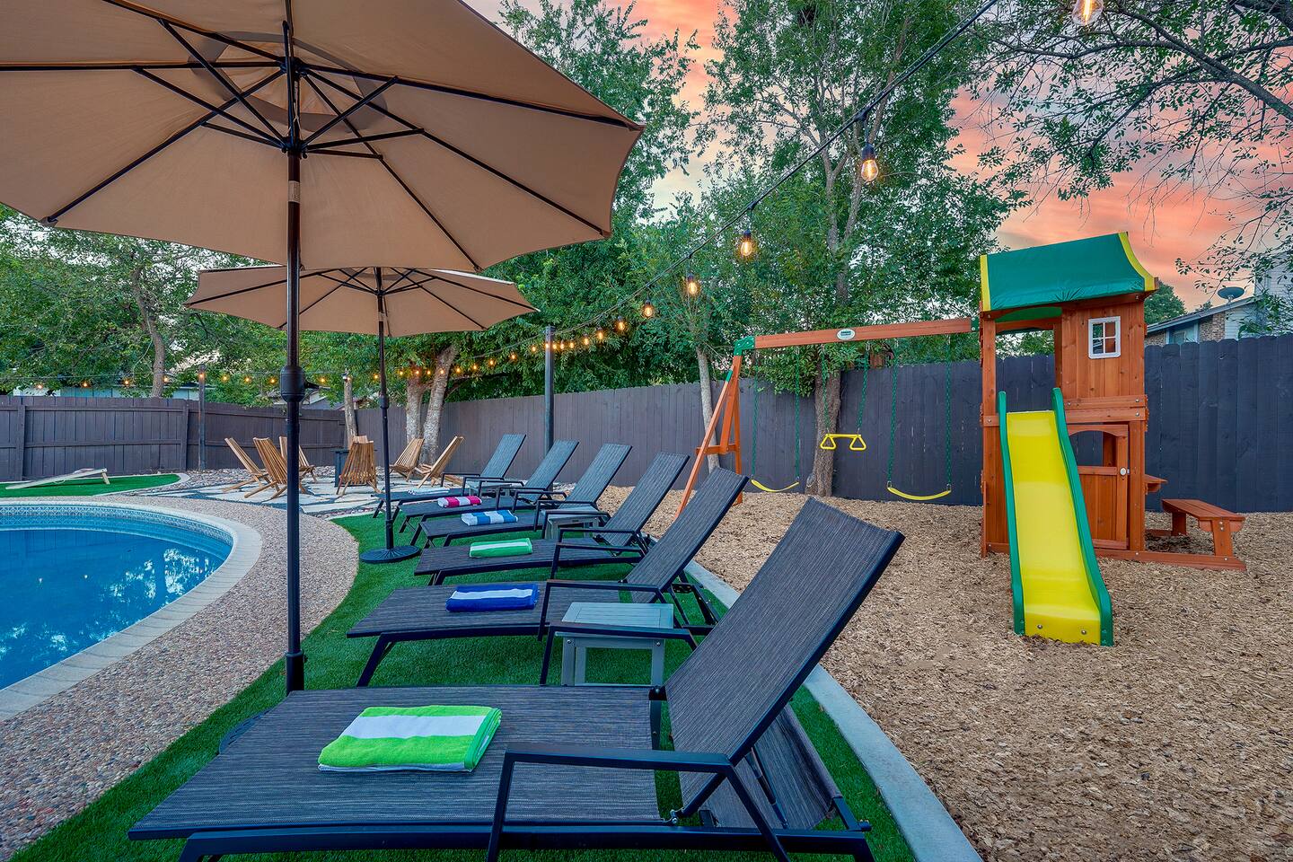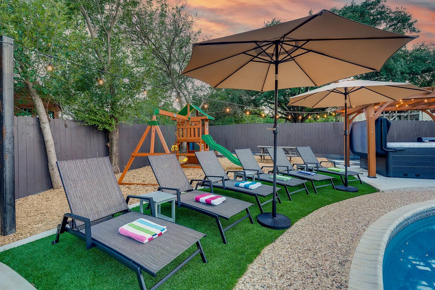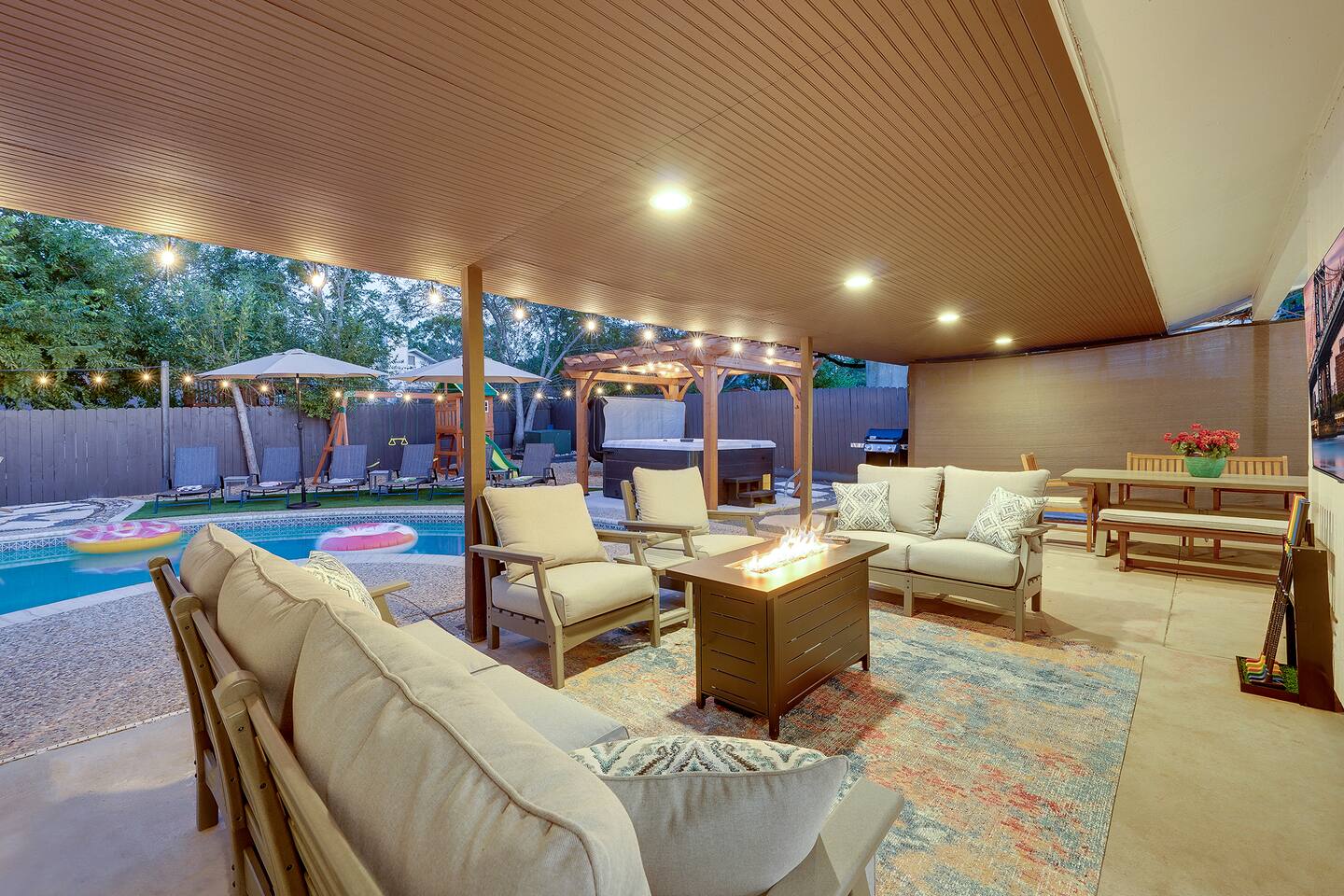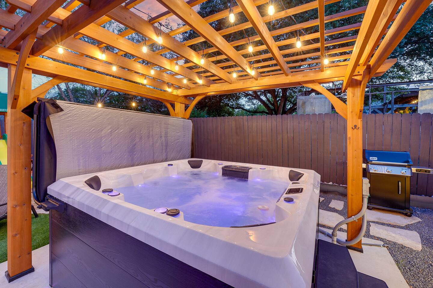 Welcome to SATX, the ultimate San Antonio vacation home, designed with luxury, comfort, and entertainment in mind—perfect for families, friends, and military personnel visiting the area. This property offers every amenity you could need for a memorable stay, whether you're here for a relaxing getaway or celebrating a special occasion. We had some reviews mentioning our Hot Tub prior to Nov 2025, yes we had a lemon of a tub and a company that took forever to find parts for us. We have installed a new, much more reliable tub as of Nov 20, 2025, we hope that it is much easier to operate and is more reliable. Gather around the multiple gas fire pits for cozy evenings or fire up the Weber BBQ grill to enjoy a Texas-style feast. Spend your days relaxing by the sparkling pool, soaking in the hot tub, or playing a competitive game of put put golf and cornhole. With plenty of pool toys for the kids, there’s something for everyone to enjoy. Inside, unwind in luxurious beds with high-end linens for a perfect night's sleep, and take advantage of the fully stocked kitchen to prepare meals for the whole group. Stay cool with Ice cold air conditioning, and enjoy gathering in beautifully designed common spaces. Conveniently located just 20 minutes from Randolph Air Force Base and 30 minutes from Lackland Air Force Base, this Airbnb is ideal for military families visiting loved ones or attending special events. You’re also just minutes away from San Antonio’s best attractions, including the River Walk, The Alamo, 6 Flags, Sea World, historic river tours, Morgans Wonderland, and top-notch restaurants. Only 1 hour away from the world’s largest Buc-ee’s! Experience the perfect blend of relaxation and adventure, book your stay now and enjoy everything San Antonio and the surrounding area have to offer!