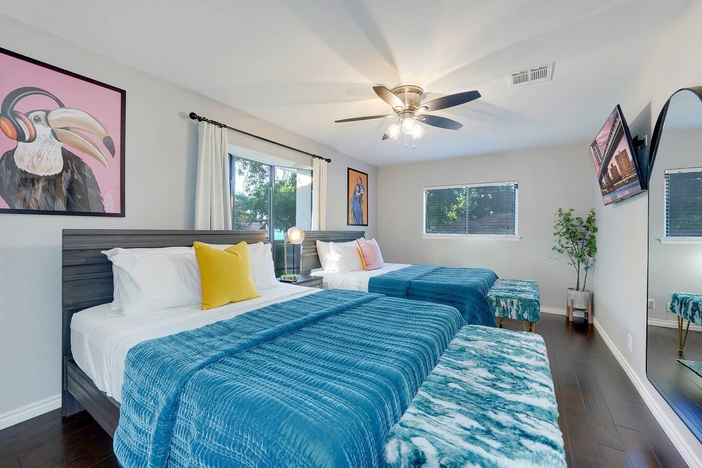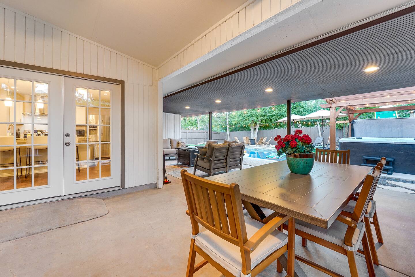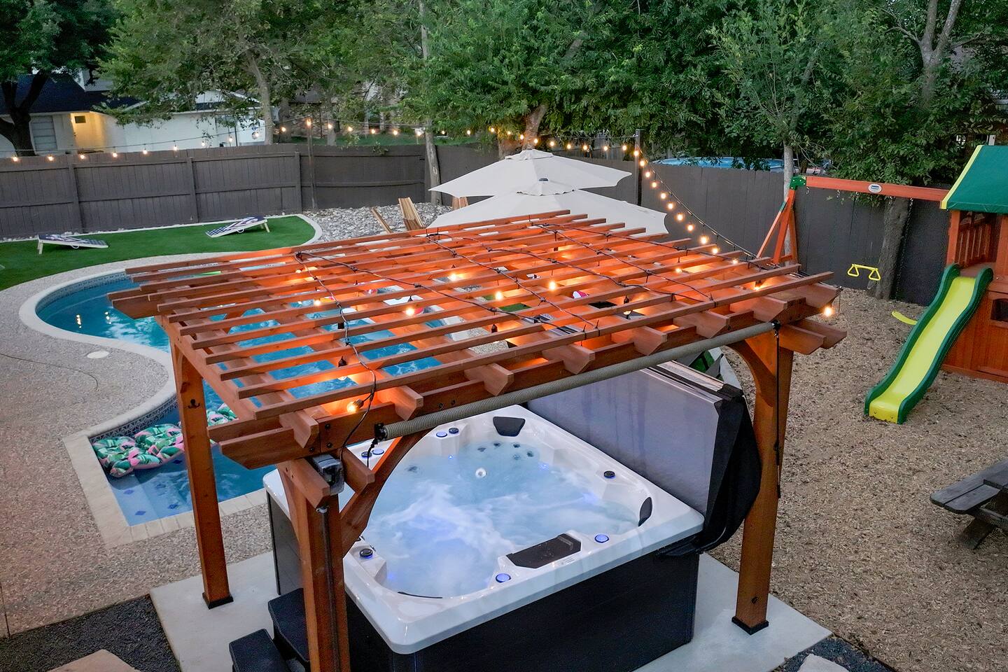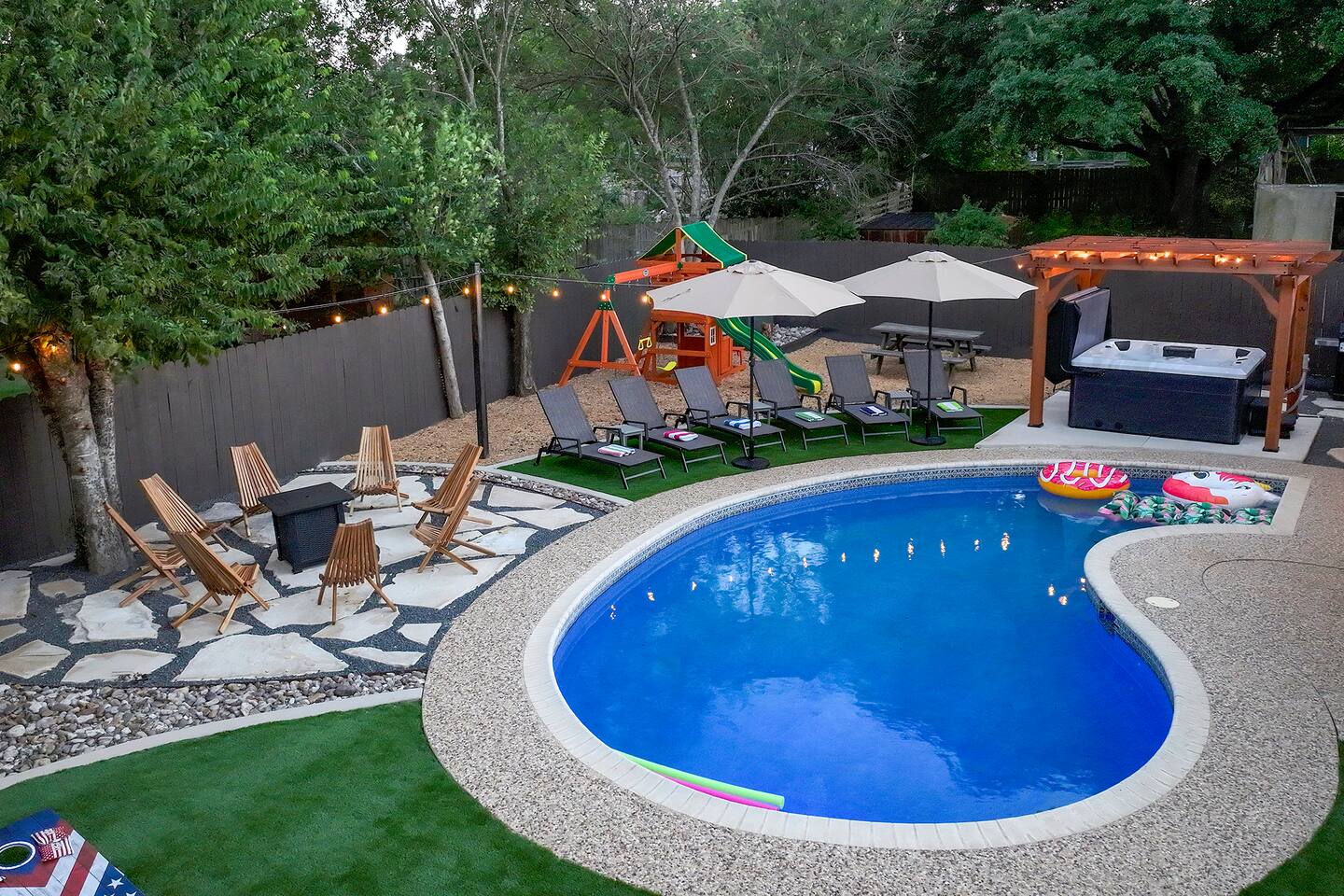 **Very Important (and slightly humorous) Details please read** **Pool and Hot Tub** Serviced every Friday mid day. The pool is heated by the sun, if you are curious on the current water temp send me a message and I'll check the Wifi thermometers! We do get some leaves in the pool, there is a pool skimmer on site in case it gets windy during your stay. The pool does not have a fence around it, PLEASE PLEASE use extreme caution with small children. We are not responsible for your children during your stay. **BUGS** Alright, folks, let’s talk about the unofficial state mascot of Texas, the cockroach. Yes, we wage war on them daily. We spray the exterior perimeter with enough bug killer it could probably take down a small army... but these critters? They laugh in the face of danger. Seriously, they could survive a nuclear apocalypse. So, if you spot one at night, especially on the outdoor patio don’t panic. It’s just auditioning for “Survivor: Texas Edition.” We promise, we’re doing everything possible to keep them out but hey, even Chuck Norris would be impressed by their resilience! Please keep the doors closed and trash picked up, especially at night if you don't want to have any of these lighting fast visitors! (seeing cockroaches will not result in a refund, sorry folks its a fact of life for Texas living) **Noise** We want you all to have an amazing trip, and part of that will be enjoying the back yard. Please have as much fun as possible, but please keep in mind quiet hours are 10:00 PM to 7:00 AM. If you are going to enjoy a bluetooth speaker outside please keep the sound level low. We have extremely kind and gracious neighbors and we want to keep it that way. Thanks for your help! **Trash** We have a trash can and recycle can, they are clearly labeled. If you are staying for multiple days and fill the inside cans please kindly take your trash and recycling to the outside can. Placing Trash in the recycle can will lead to additional charges as the trash company WILL NOT empty it for us and I have to pay a handyman to come by to pull trash out of the recycle can. Your help and diligence is absolutely appreciated! Thanks!