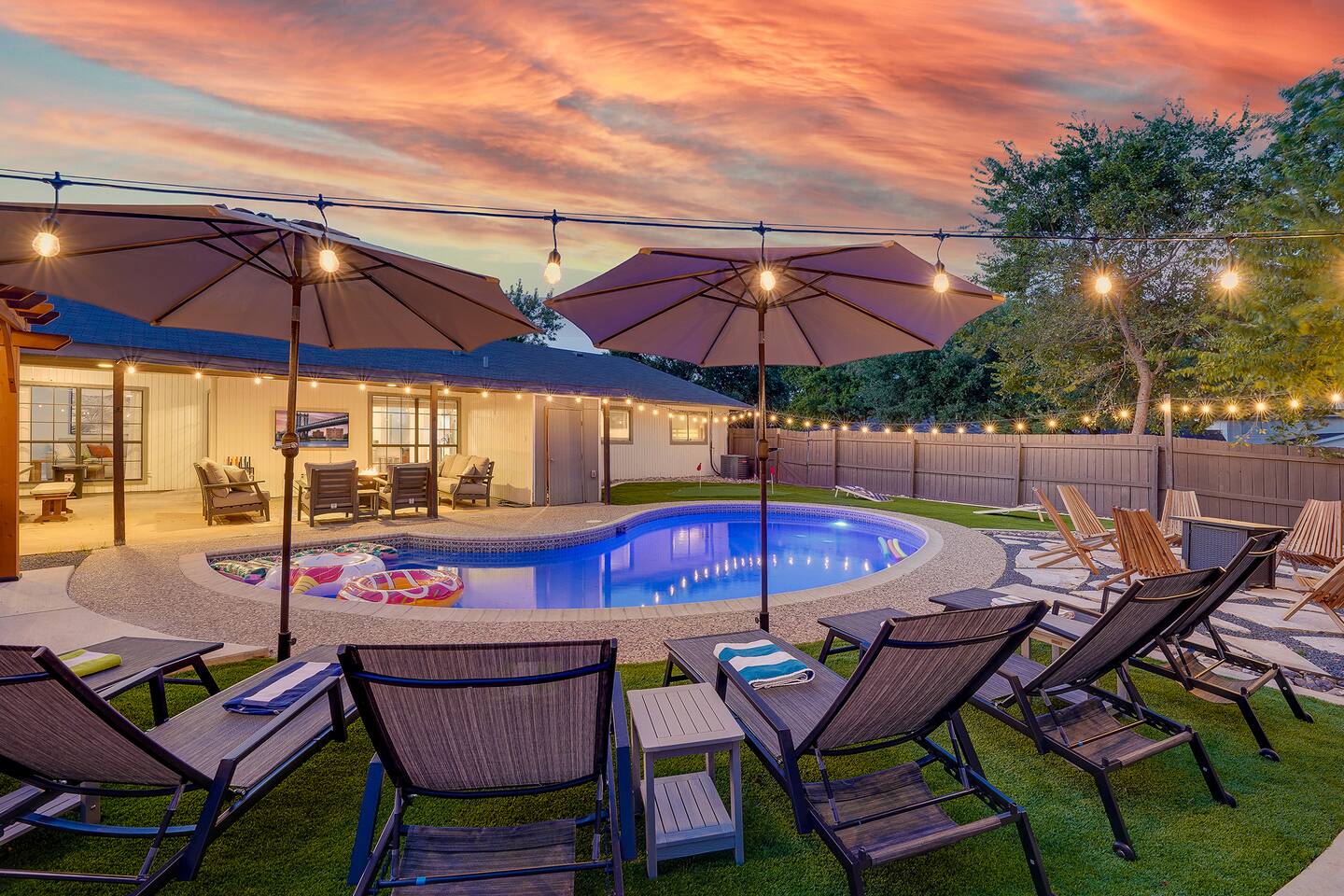 **Brand New Hot Tub Nov 20, 2025** Escape to San Antonio in style! Designed specifically for guests, sleeps 12 and features a private backyard oasis with a pool, 2 gas fire pits, mini-golf, corn hole, and a covered patio with outdoor TV and loungers. Enjoy fast WiFi, luxe beds, a gas BBQ, and plenty of space to relax or entertain. Perfect for families and groups, just 15 minutes from the airport. Whether you're making memories or unwinding under the bistro lights, this SATX retreat has it all!